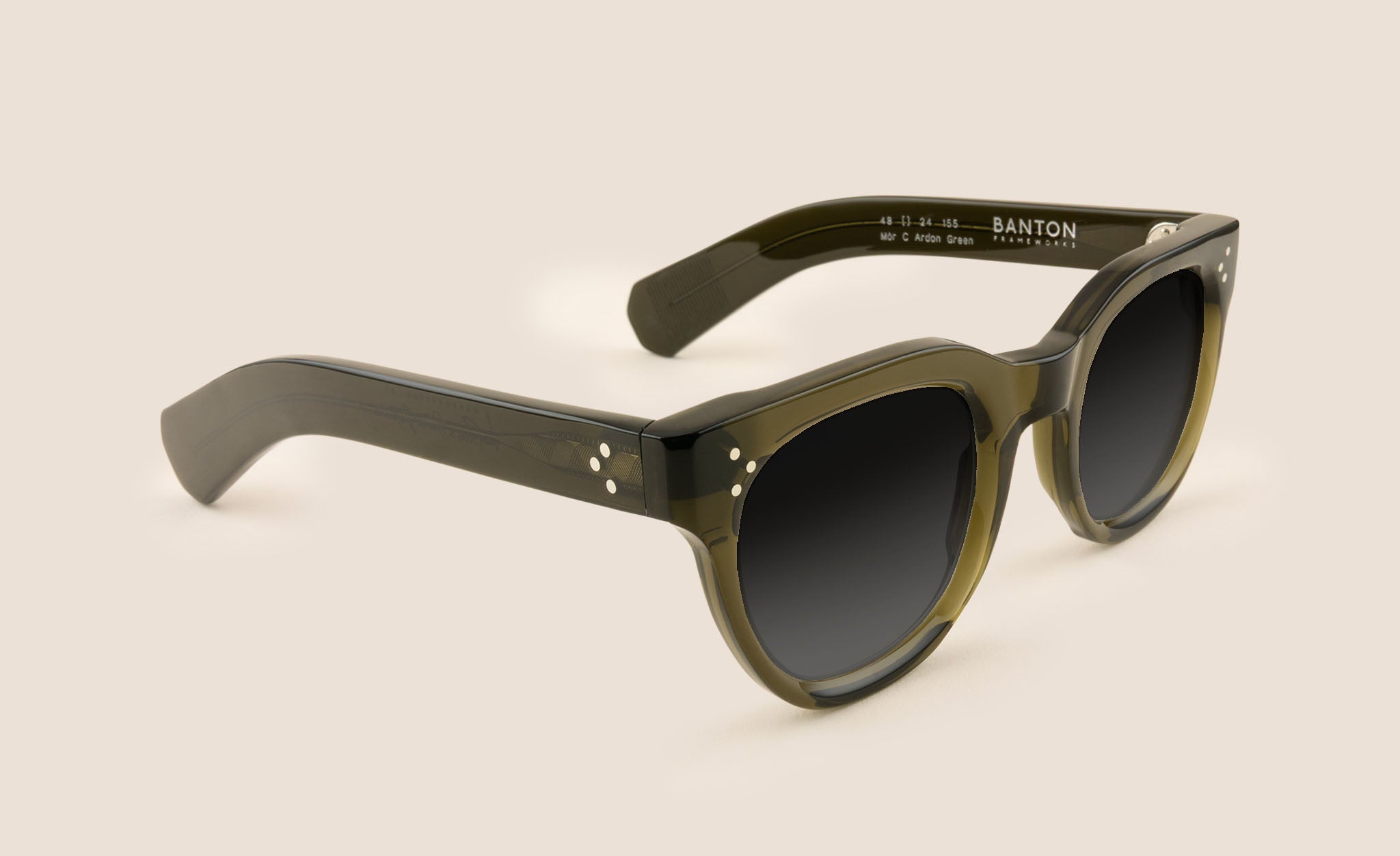 A confident nod to mid-century eyewear, the Mòr C balances a straighter brow with softly rounded lower rims. In Ardon Green, the translucent acetate reads dark at first glance, but reveals subtle depth and warmth in the light. A softer, more characterful alternative to black. Large fit with straight ‘paddle temples’ which grip the sides of your head rather than hooking behind your ears. Pairs nicely with grey or brown sun lenses.